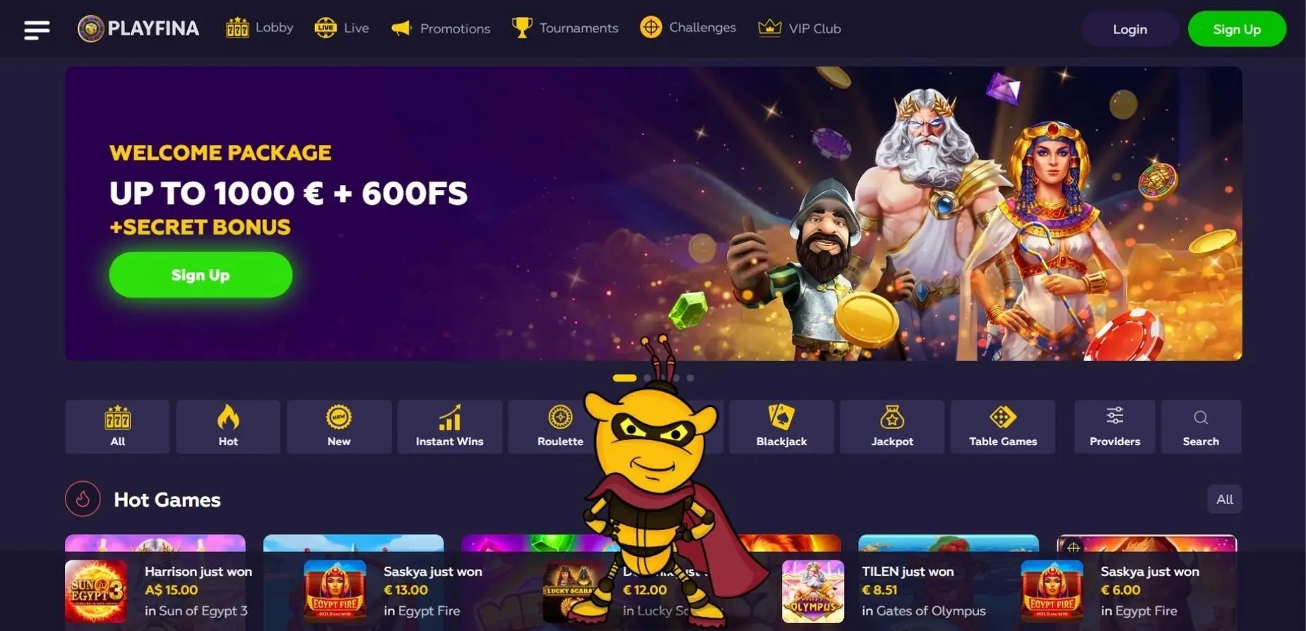 More than 11,000 slots, all varieties of blackjack, dozens of roulette games, craps, video poker, and other games are available to you at Playfina casino online Unlock Exclusive Benefits and Rewards with Playfina Login to Stay at the Forefront! Play the Best Online Casino Games at Playfina ✓ Try Slots, Blackjack, Roulette, Craps and Video Poker with Huge Bonuses. Playfina Casino How to Start Up to 1000€ + 200 FS + Secret Bonus... Playfina Casino - Bonus Codes – 50 Free Spins!